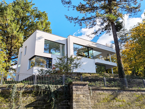 Einfamilienhaus im Bauhausstil mit Panoramablick