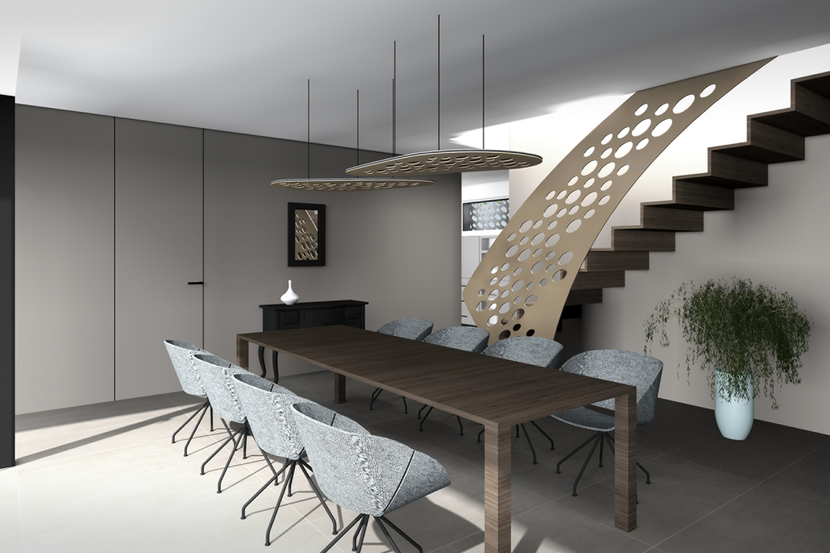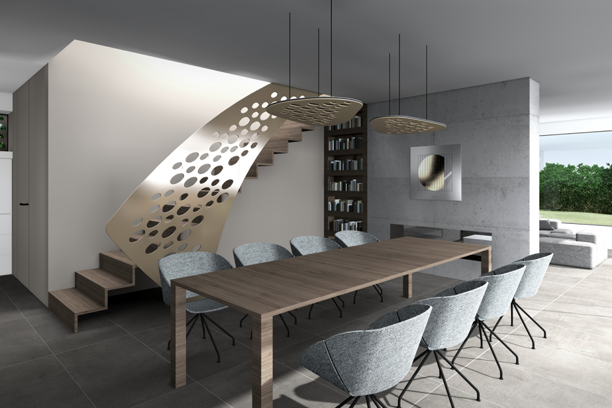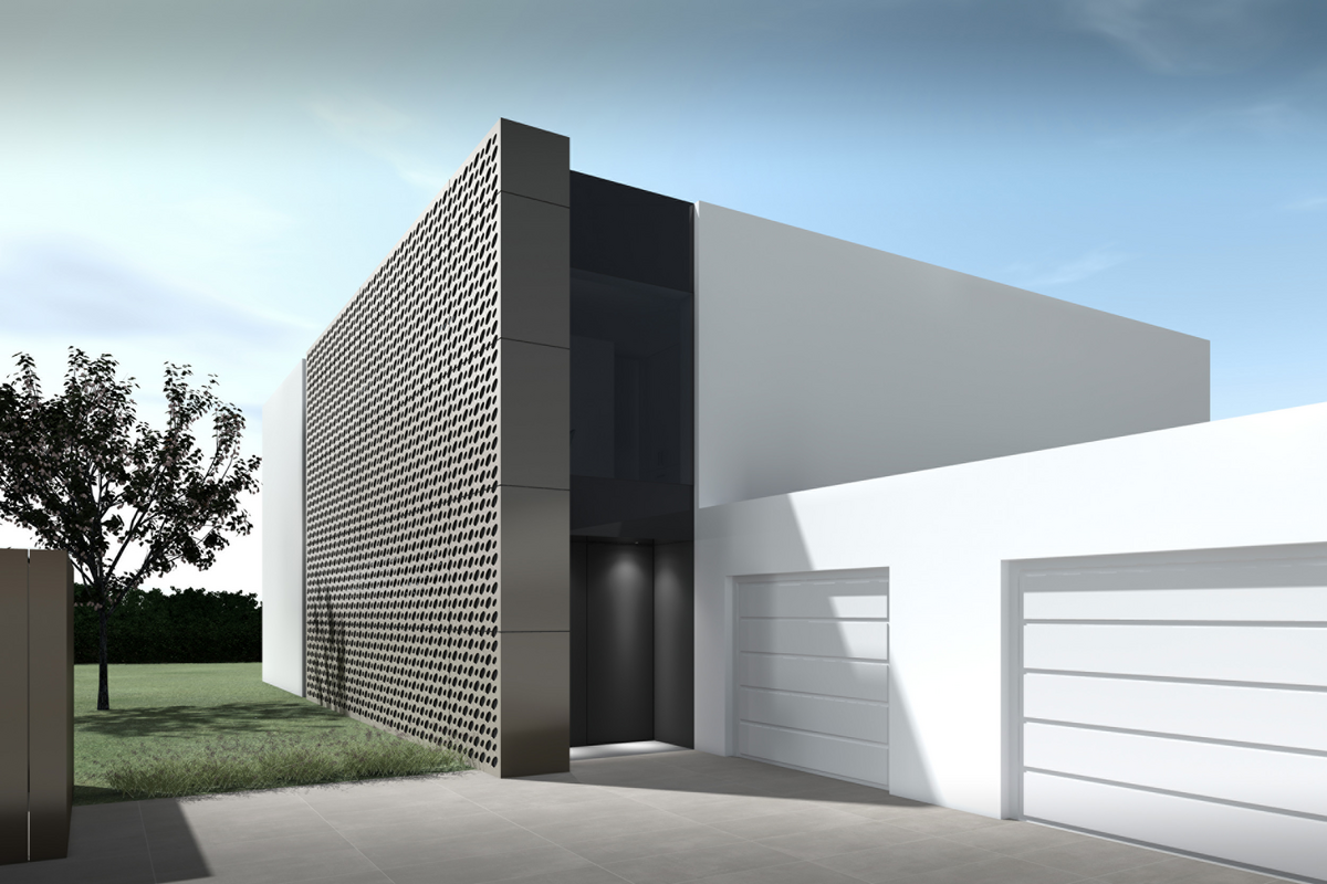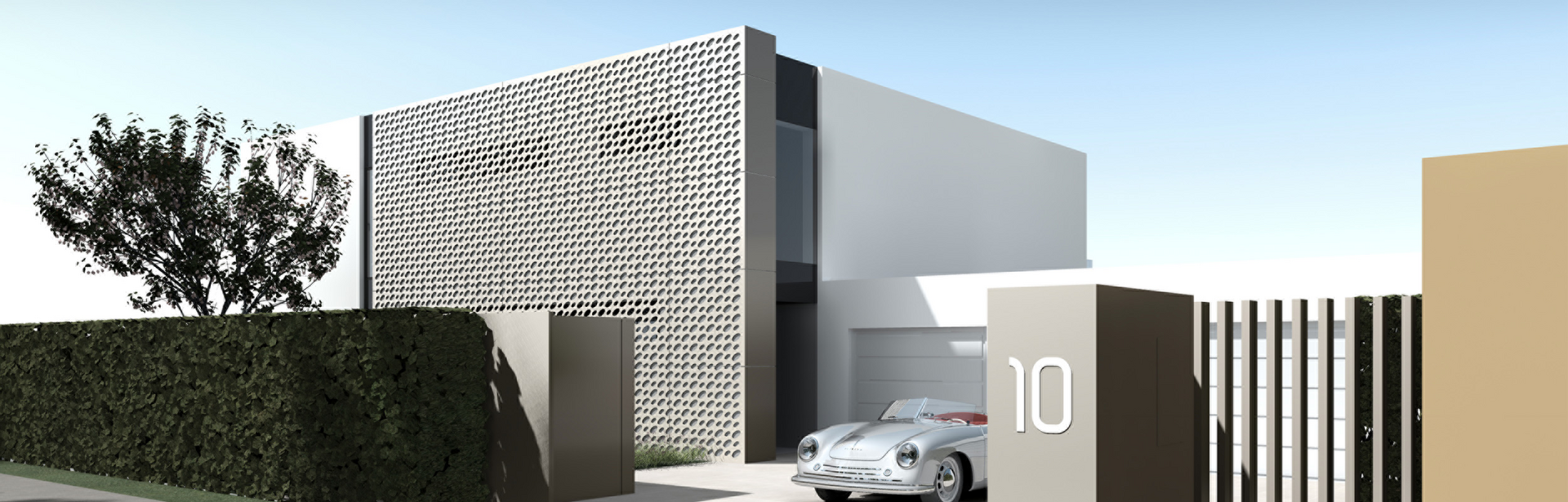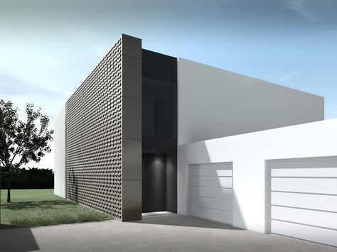 Durch den Einsatz einer perforierten Alucobondfassade schaffen wir ein dynamisches Spiel aus Licht und Schatten. Während diese tagsüber als effektiver Sicht- und Sonnenschutz dient, verwandelt sich das Gebäude bei Nacht in einen leuchtenden Kristall. Daher strahlt das Objekt zu jeder Stunde sowohl Eleganz als auch Sicherheit aus. Alucobond bietet hierbei als Material eine besondere Langlebigkeit und Präzision, die für hochwertige individuelle Architektur unerlässlich ist.